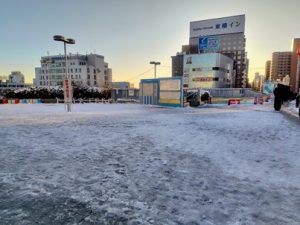 今朝の相模原駅のデッキですが、雪が凍っています。まだ数日は残ると思います。移動の際はご注意ください。